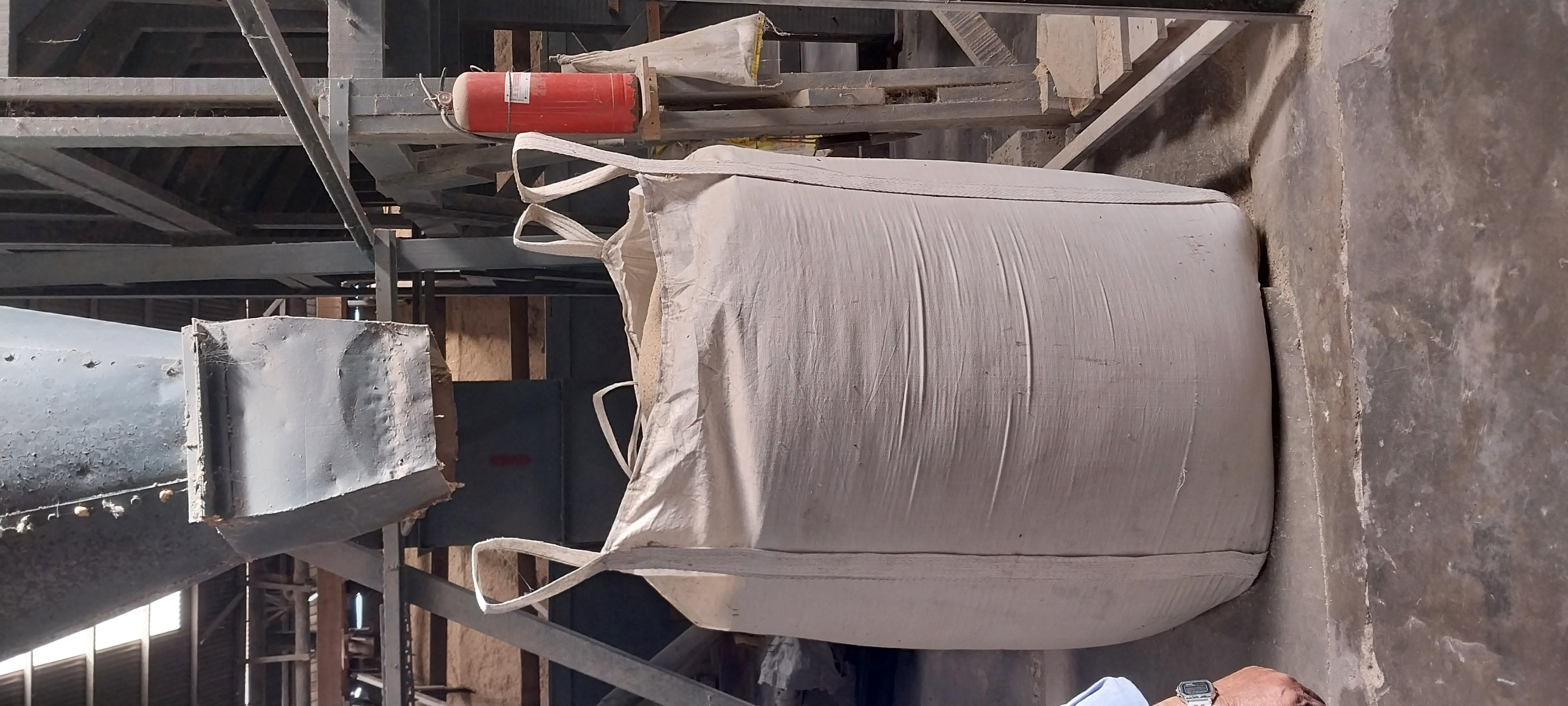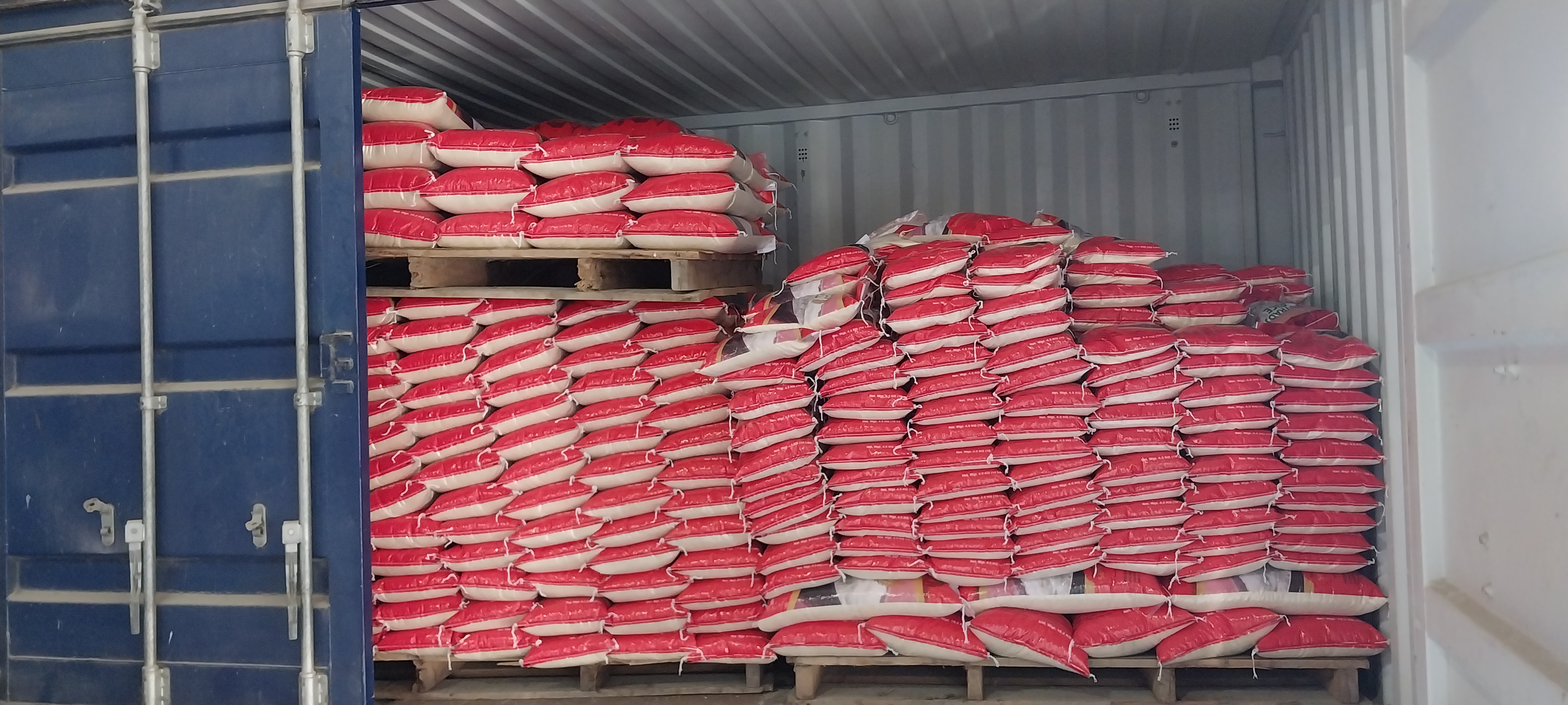 The rice is packed in container bags on a large scale.